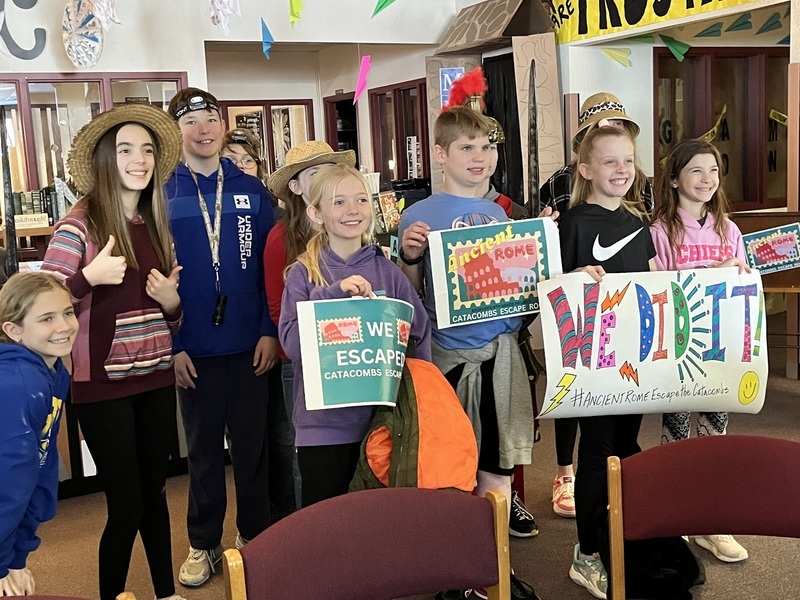 The number one tourist attraction on the block made its first debut today. The mysterious and Ancient roman catacombs were a hit! Mr. Kroeker's 6th-grade class made an escape room to venture into and find a way out. It was a fun and creative project and many kids and adults enjoyed going through it. Each student made their own exhibit inside the escape room which included a clue of how the tourist could escape. Elementary students, high school students, and even parents were able to experience the thrilling suspense of the escape room. A big Congrats to all the kids who were a part of making this fun experience! They did amazing.
